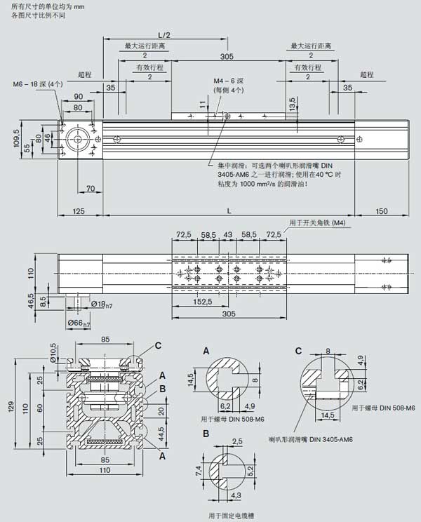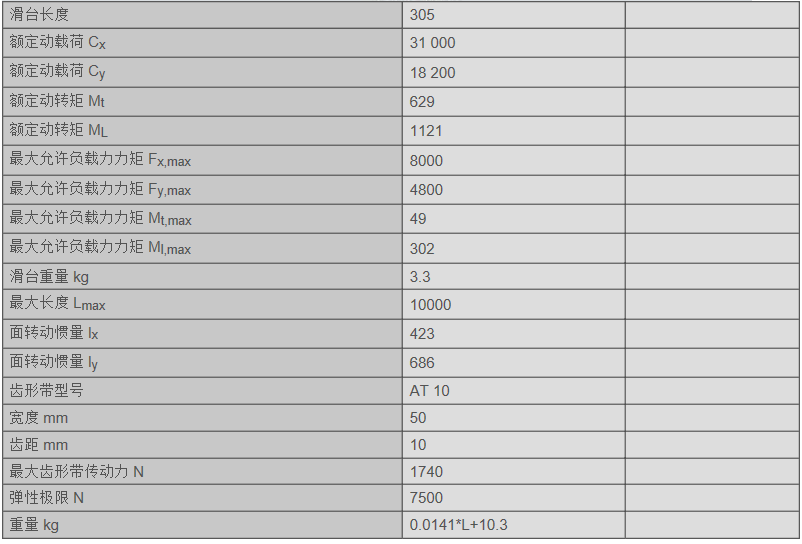 最大许用弯曲变形 fmax:最大许用弯曲变形 fmax 取决于长度 L和负载 F。cc不许超过 fmax 值!在对系统动态特性有高要求时,应在每 300 至600 mm 间附加支撑。