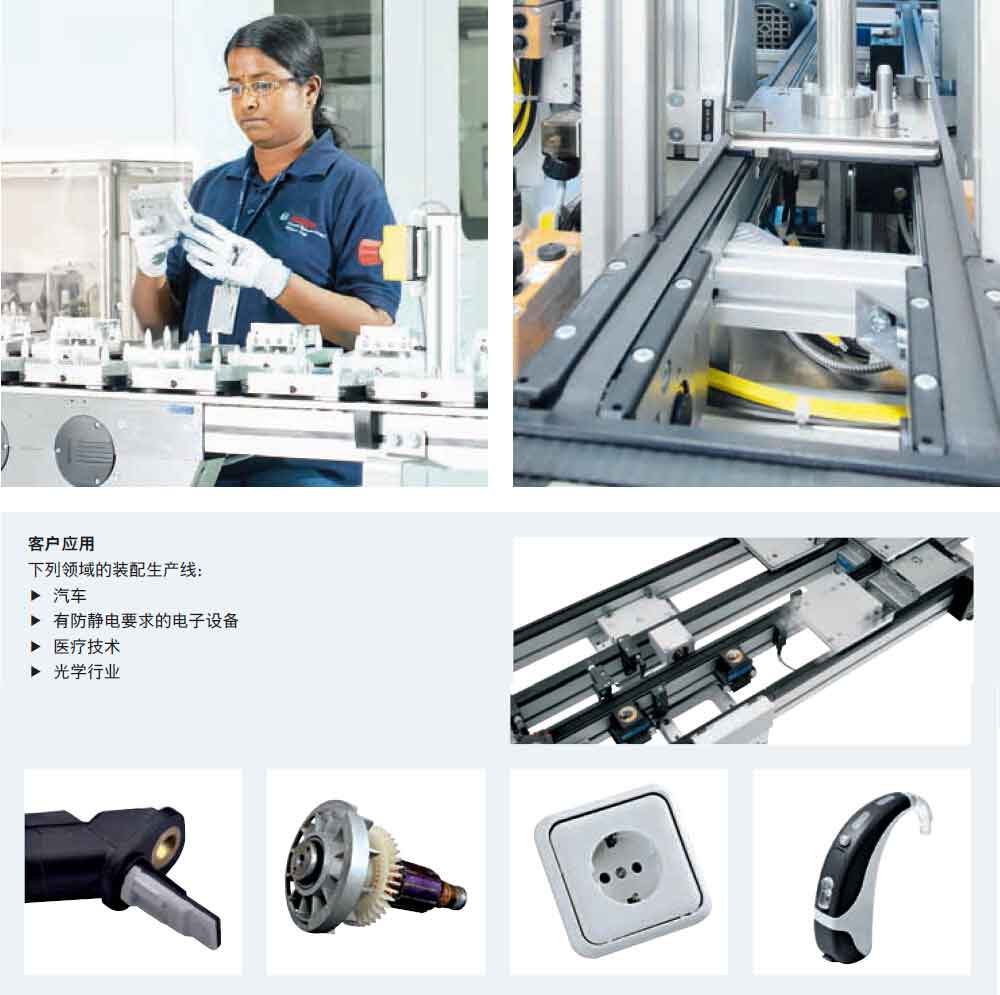 客户应用下列领域的装配生产线: --汽车 --有防静电要求的电子设备 --医疗技术 --光学行业