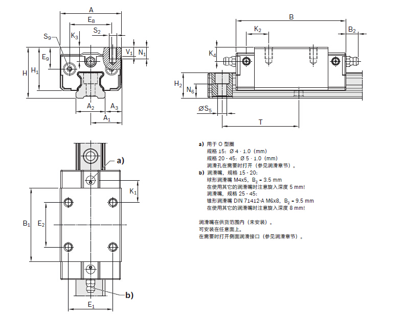 三代经适型滑块R205E71220及配套导轨可替换二代滑块R162171220及配套导轨 动态特性 速度: vmax = 3 m/s 加速度: amax = 250 m/s2 (当 Fcomb > 2.8 · Fpr 时:amax = 50 m/s2) 说明 适合于所有 BSCL 滚珠导轨 KSE-...-SNS