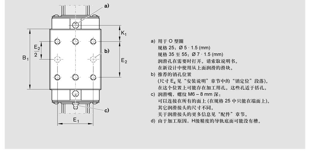 滑块 SNH R1821 ... 10 窄型, 标准长, 高 更多款式滑块 --带铝端盖 --从上面进行油润滑和脂润滑 --用于集中油润滑 --用于墙面安装
