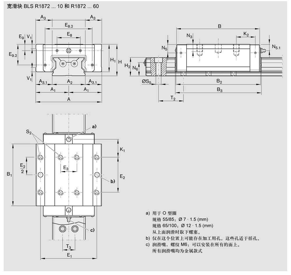 钢制宽滑块 BLS R1872 ... 60 宽, 长, 标准高