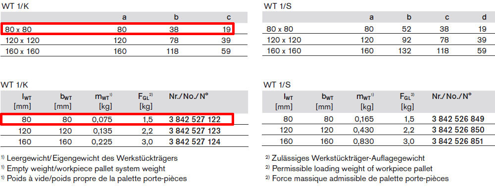 3842527122名称TS1工件托盘WT 1/K-80,LWT=80MM;BWT=80MM,重量0.08kg。